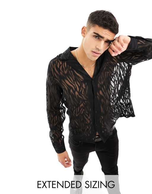 ASOS DESIGN relaxed deep revere sheer burnout zebra shirt in black