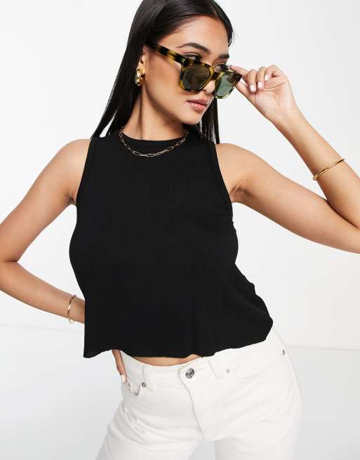 ASOS DESIGN relaxed fine knit tank top with raw hem in black