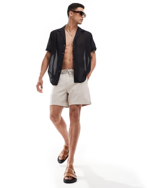 ASOS DESIGN relaxed fit short sleeve revere collar sheer shirt in navy