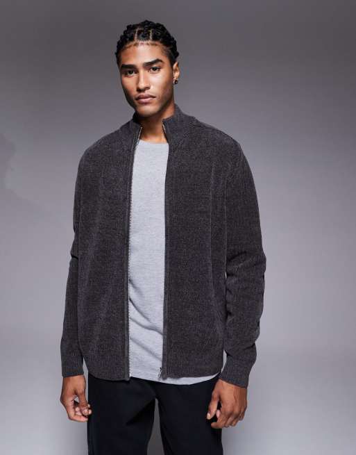 ASOS DESIGN relaxed knit chenille track jacket in charcoal