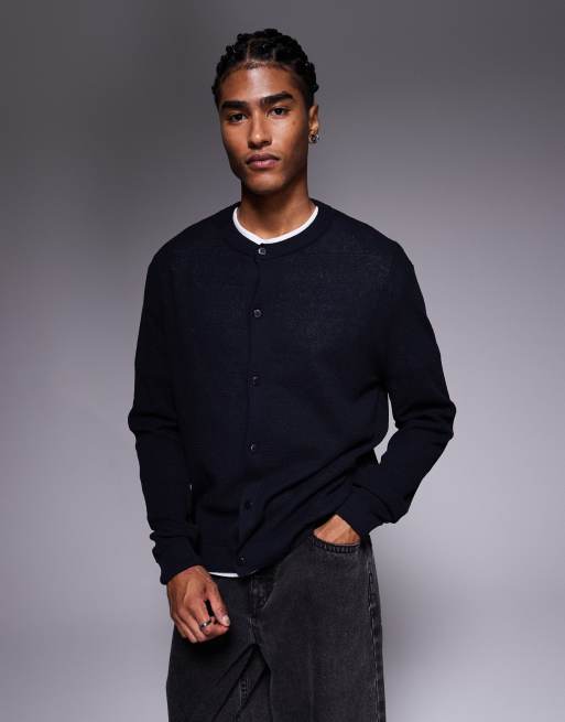 ASOS DESIGN relaxed knit crew neck cardigan in navy