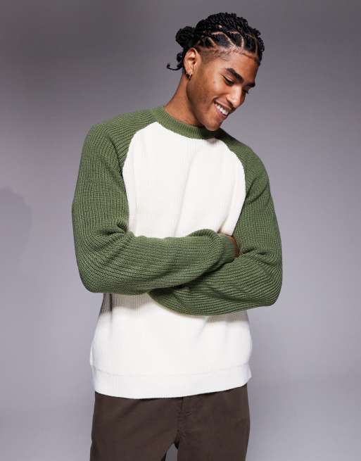 ASOS DESIGN relaxed knit raglan long sleeve crew neck sweater in cream