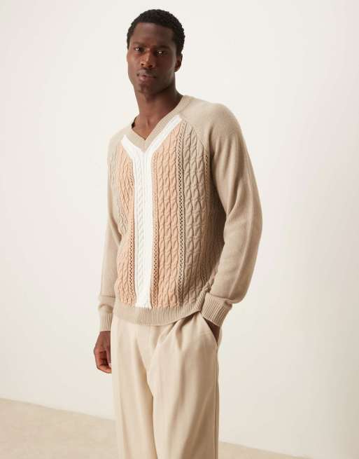ASOS DESIGN relaxed knitted cable knit sweater in stone