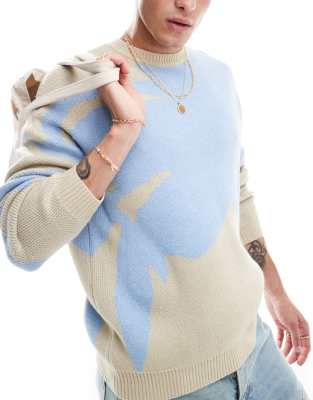 ASOS DESIGN relaxed knitted sweater in ecru with blue floral pattern
