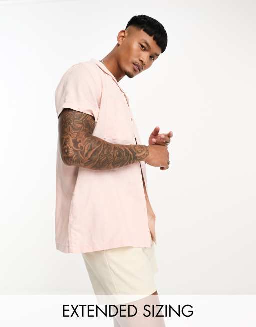 ASOS DESIGN relaxed linen shirt with double pockets in pink