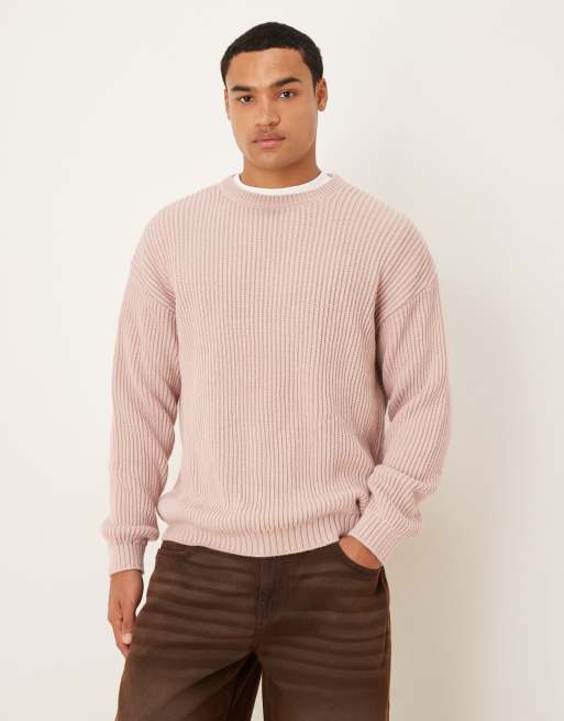 ASOS DESIGN relaxed long sleeve knit crew neck stripe sweater in pink