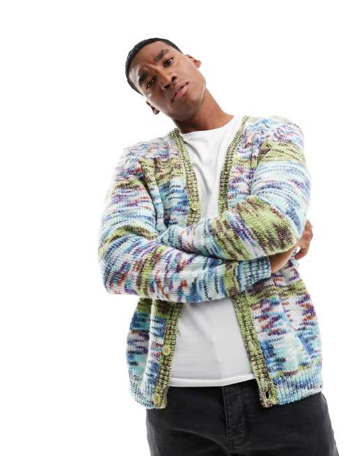 ASOS DESIGN relaxed open knit space dye cardigan in blue