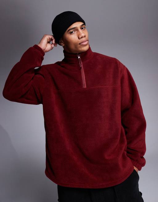 ASOS DESIGN relaxed quarter zip fleece sweatshirt in burgundy
