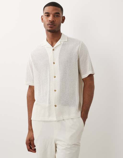 ASOS DESIGN relaxed revere open texture shirt in off white