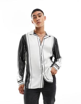 ASOS DESIGN relaxed revere satin shirt in retro monochrome stripe