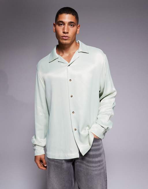 ASOS DESIGN relaxed revere satin shirt in sage green