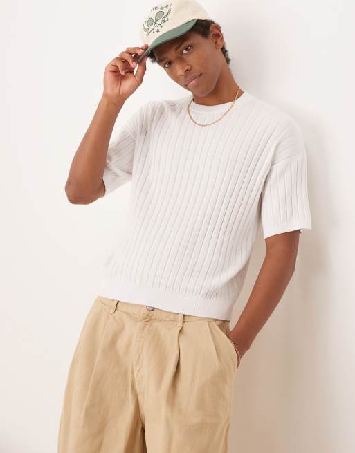 ASOS DESIGN relaxed rib knit t-shirt in white