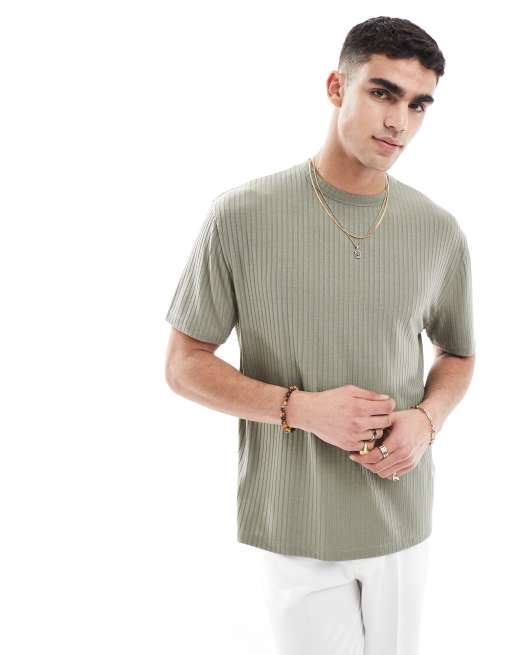 ASOS DESIGN relaxed rib t-shirt in green
