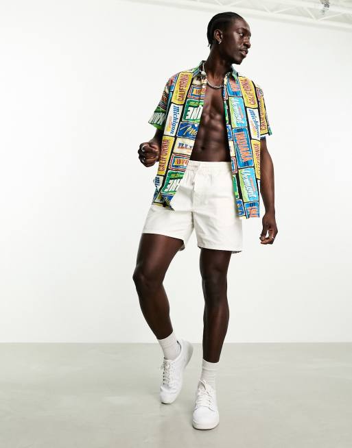 ASOS DESIGN relaxed shirt in linen mix postcard print