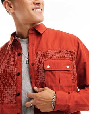 ASOS DESIGN relaxed shirt with mesh panels and cargo pockets in washed red