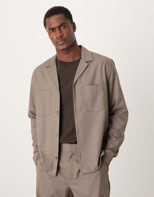 ASOS DESIGN relaxed smart long sleeve shirt in beige flannel - part of a set