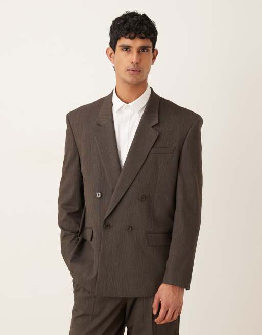 ASOS DESIGN relaxed square shoulder suit jacket in brown subtle stripe