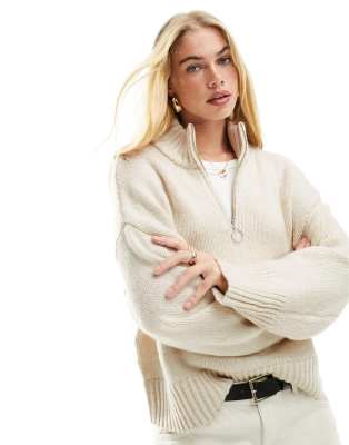 ASOS DESIGN relaxed sweater with zip collar in cream