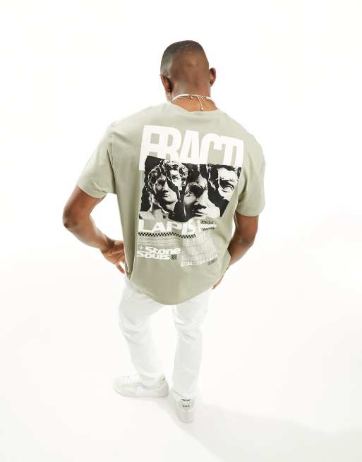 ASOS DESIGN relaxed t-shirt in pale khaki in statue back print
