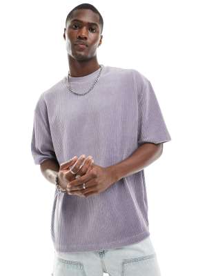 ASOS DESIGN relaxed t-shirt with ribbed velour in lavender