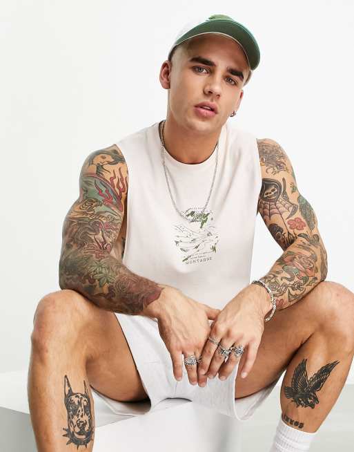 ASOS DESIGN relaxed tank top in beige with scenic chest print
