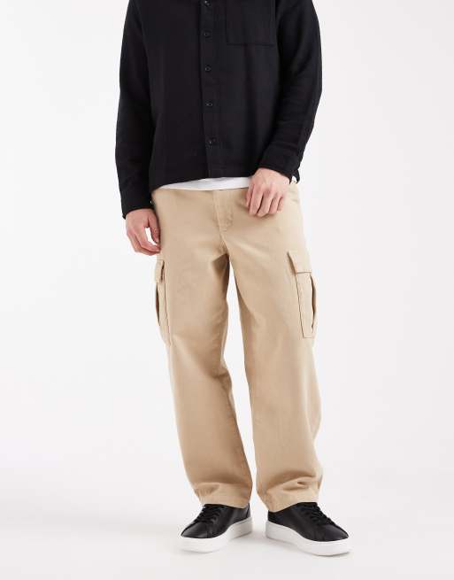 ASOS DESIGN relaxed tapered cargo pants in beige