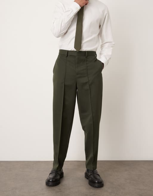 ASOS DESIGN relaxed tapered dress pants with pintucks in dark green