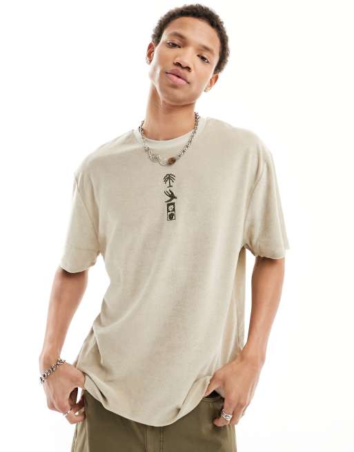 ASOS DESIGN relaxed terrycloth T-shirt with chest embroidery in beige