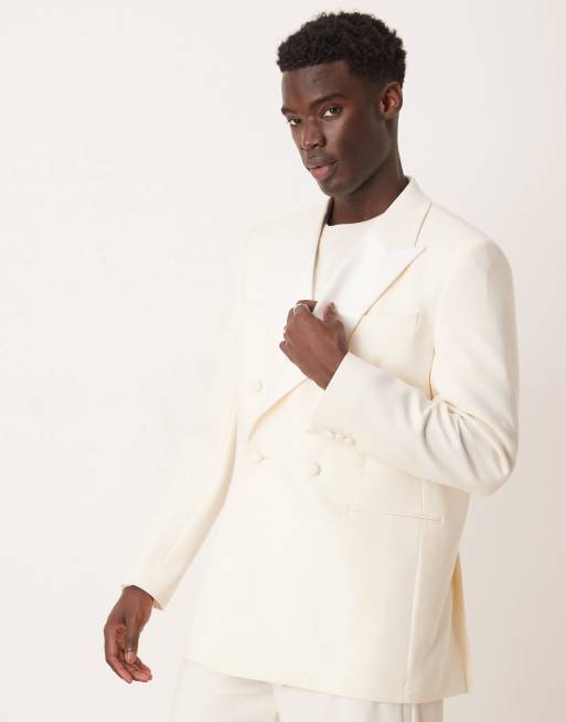 ASOS DESIGN relaxed tuxedo suit jacket in cream texture