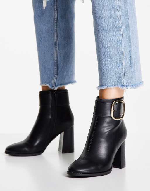 ASOS DESIGN Repeat block heel buckle boots in black