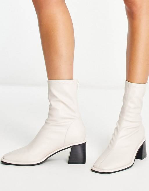 ASOS DESIGN Rescue mid-heeled sock boots in off white