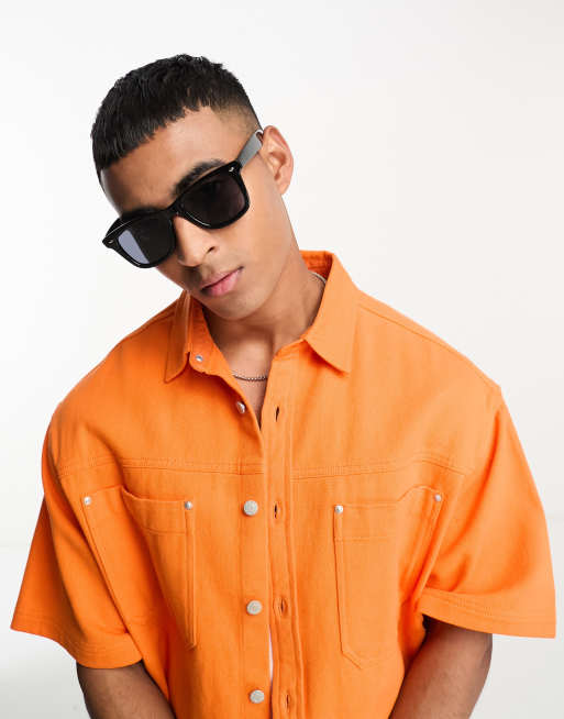 ASOS DESIGN retro square sunglasses in black plastic with smoke lens