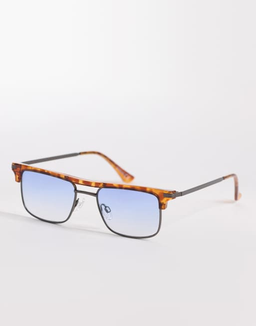ASOS DESIGN retro sunglasses in orange tort with blue lenses