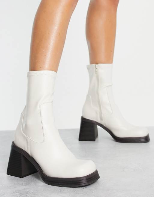 ASOS DESIGN Reversed mid-heel sock boots in off white