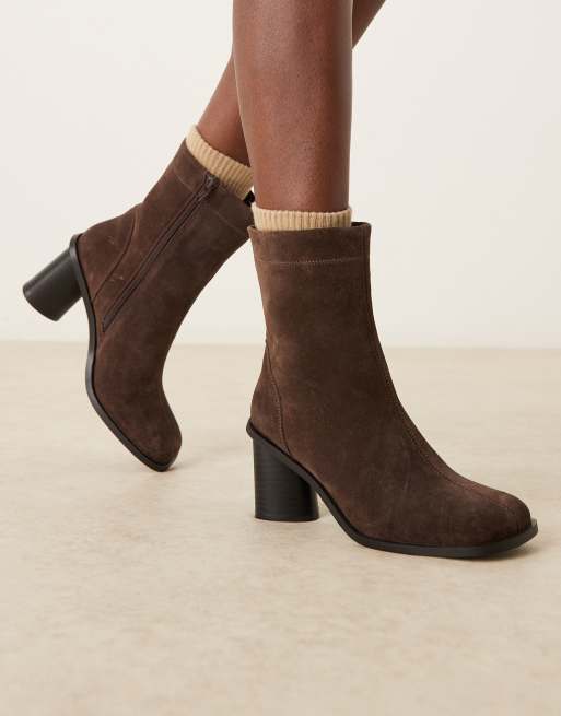 ASOS DESIGN Rex suede round toe ankle boots in chocolate