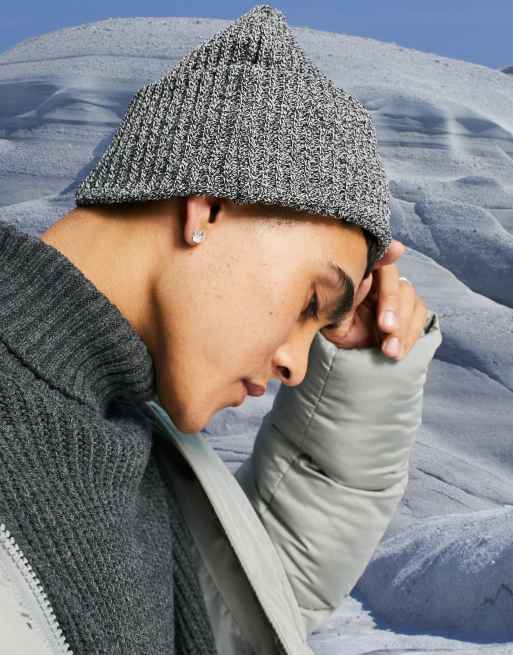 ASOS DESIGN rib beanie with deep turn up in gray heather