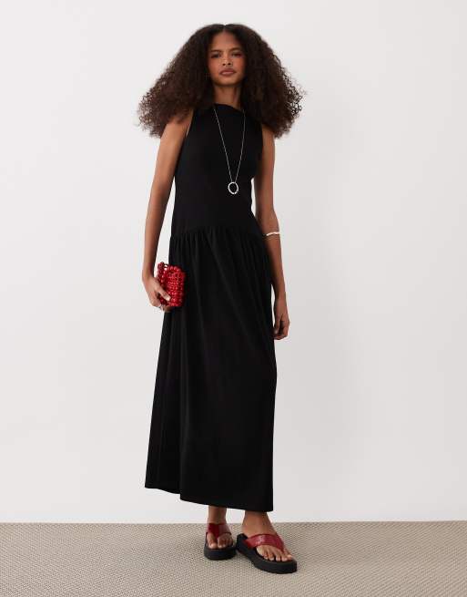 ASOS DESIGN rib mix midi dress with drop waist in black