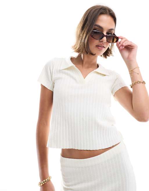 ASOS DESIGN ribbed knit polo shirt in white
