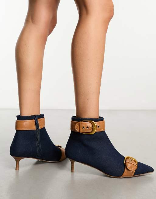 ASOS DESIGN Riley buckled kitten heel boots in blue denim