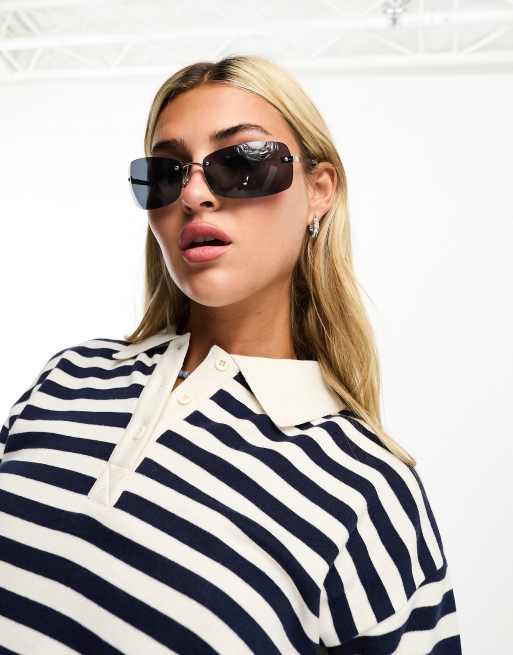 ASOS DESIGN rimless 90s wrap sunglasses with smoke lens