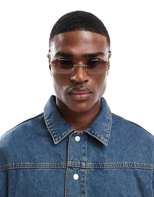 ASOS DESIGN rimless sunglasses with brown lenses and metal gold frames