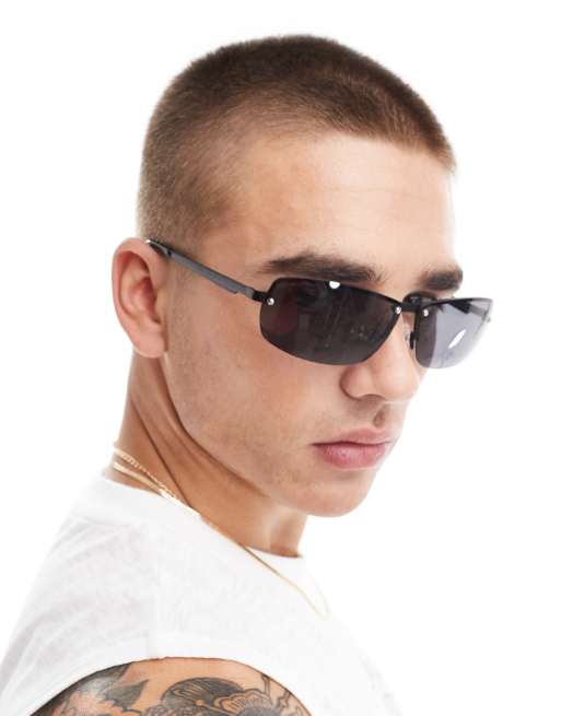 ASOS DESIGN rimless wrap sunglasses in black