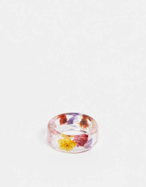 ASOS DESIGN ring with colorful flowers in clear plastic resin