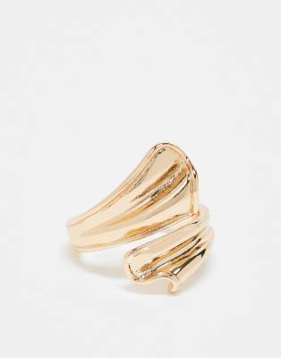 ASOS DESIGN ring with flutter wrap around detail in gold tone
