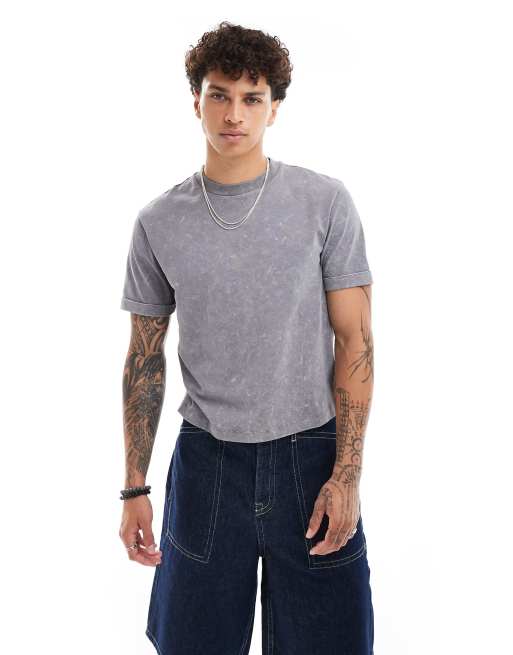 ASOS DESIGN roll sleeve cropped T-shirt in gray
