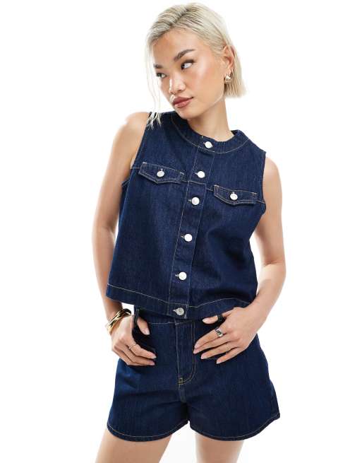 ASOS DESIGN round neck denim vest in indigo - part of a set