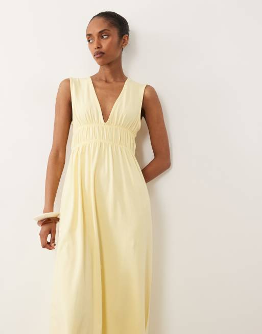 ASOS DESIGN ruched bodice plunge maxi dress in lemon