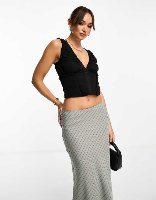 ASOS DESIGN ruched hook and eye corset top in black
