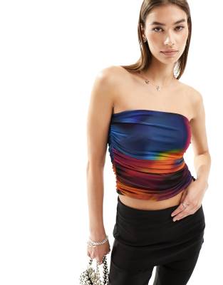 ASOS DESIGN ruched mesh bandeau top in dark marble print