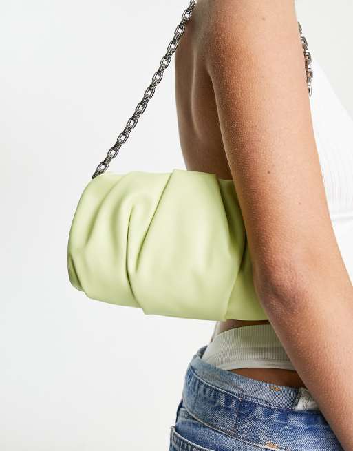 ASOS DESIGN ruched shoulder bag with chain strap in green